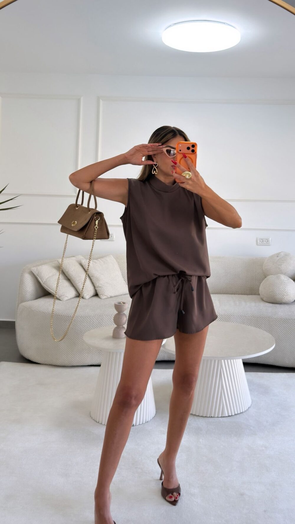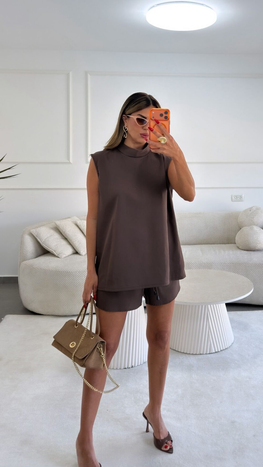 חליפת מכנס קצר וחולצה ללא שרוולים בגזרת גולף משוחררת- מבד קיצי נעים ונודם.