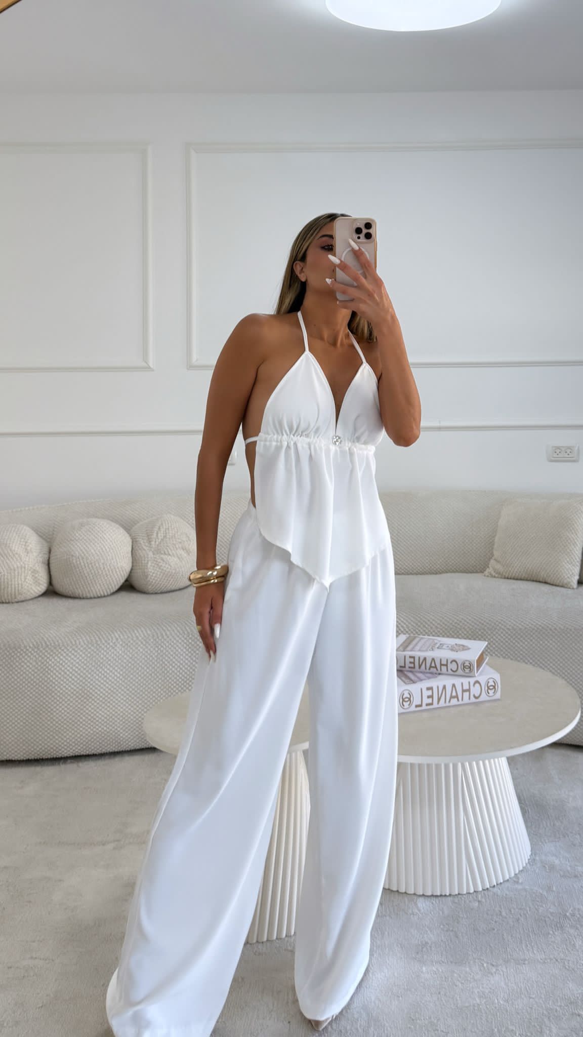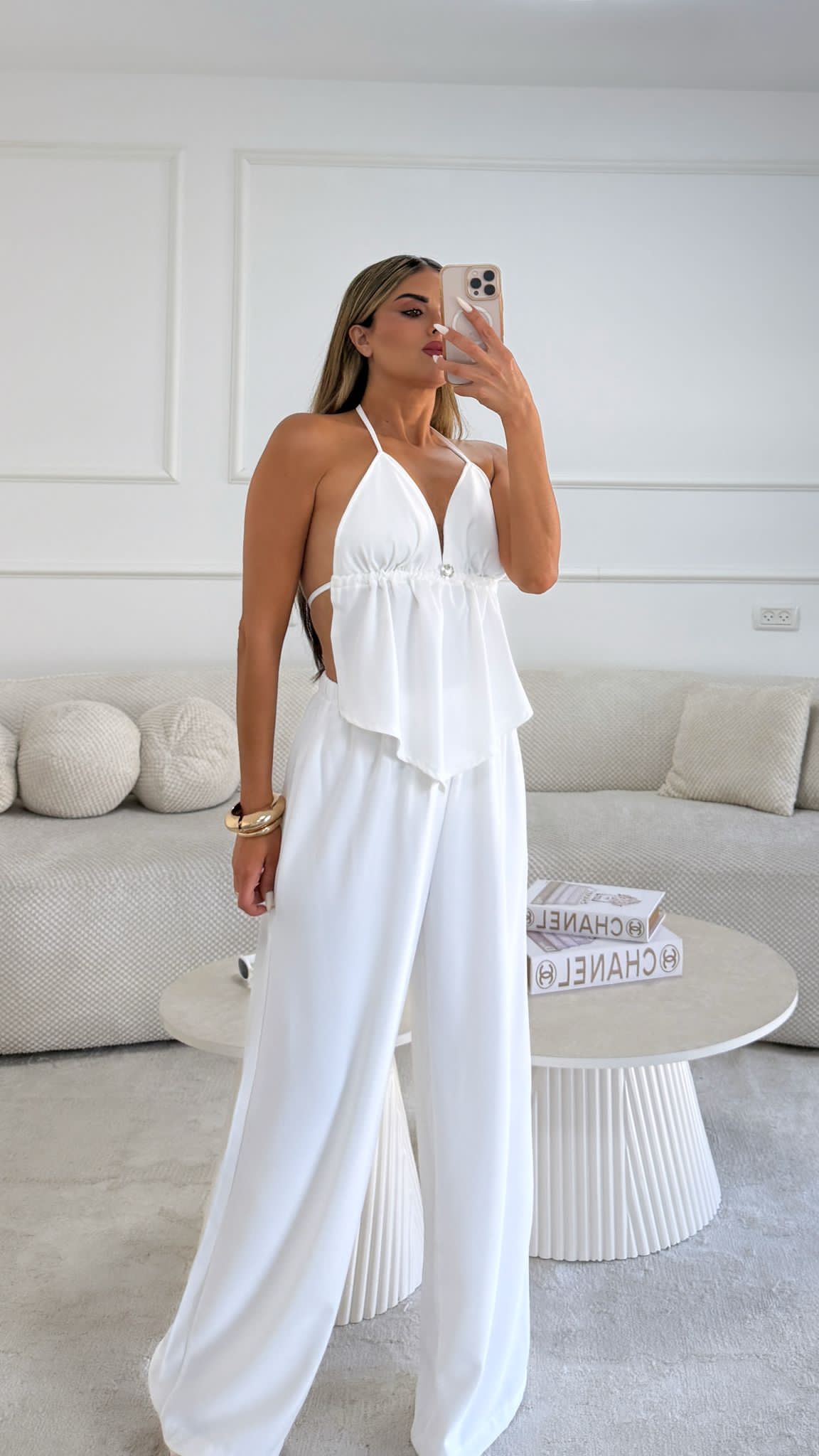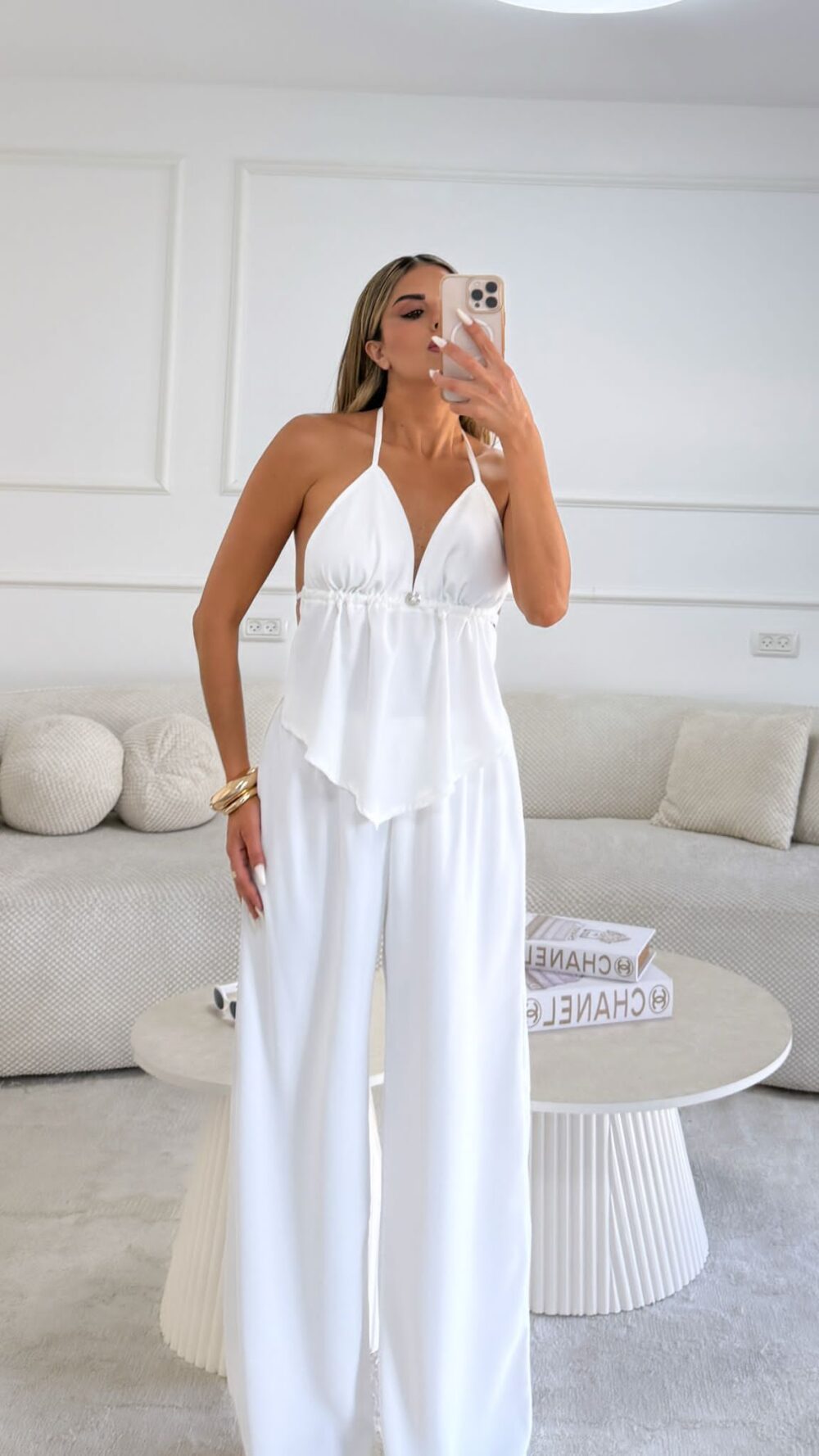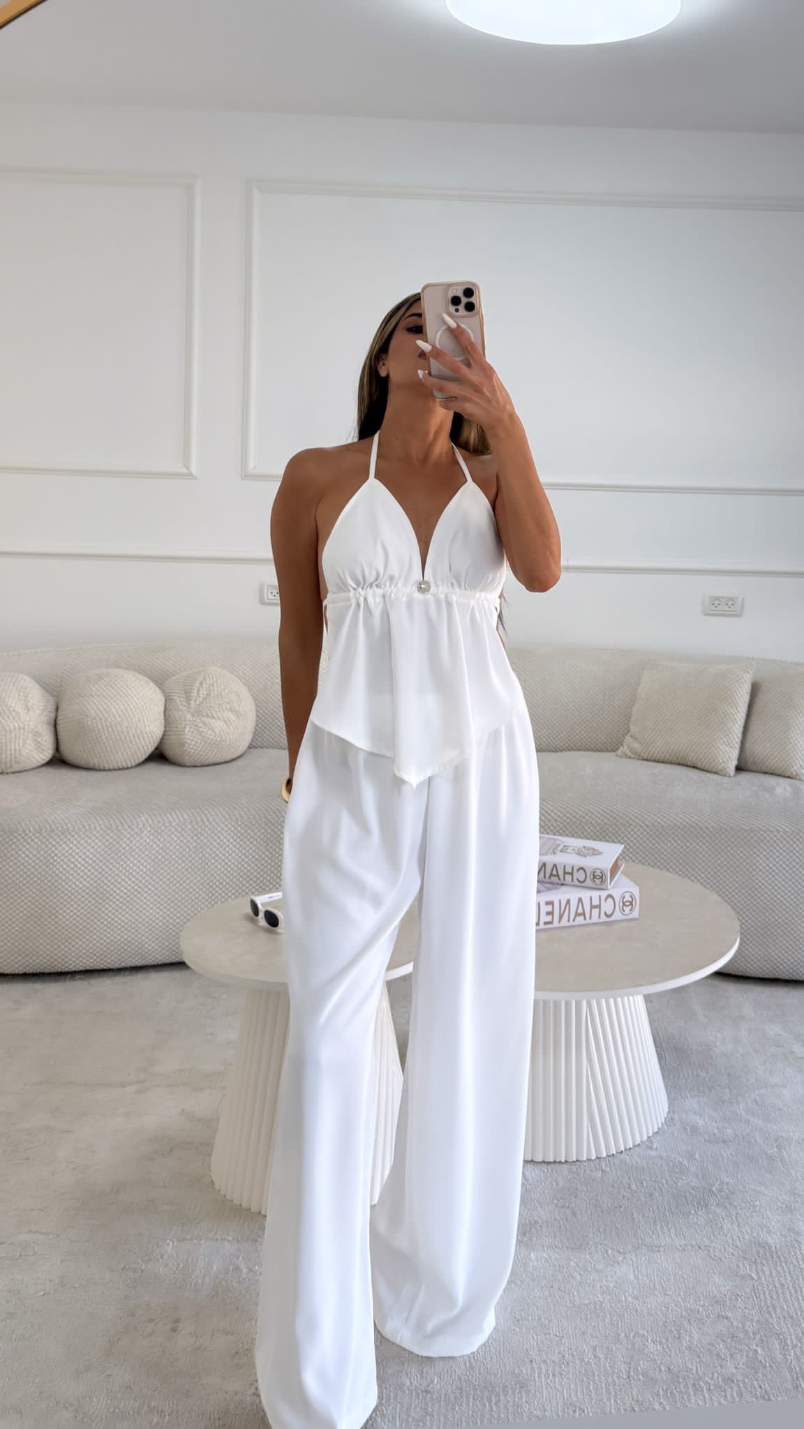 תארי לעצמך יום קיץ חם, את מחפשת את השילוב המושלם בין סטייל מוקפד לנוחות מקסימלית, ומגלה את הסט הזה. קולקציית הפשתן החדשה שלנו מציגה את סט הקרופ טופ ומכנסי הפאלאצו הלבנים, פריט חובה שישדרג כל מלתחה קיצית. העיצוב המתוחכם משלב בתוכו קרופ טופ מחמיא עם קשירה עדינה בעורף, המעניק מראה קליל וסקסי, ומכנסי פאלאצו רחבים ונשפכים שמבטיחים חופש תנועה ונוחות לאורך כל היום. הבד הלבן והטהור מוסיף נופך של אלגנטיות נצחית, בעוד מרקם הפשתן המיוחד מעניק מראה טבעי ויוקרתי.