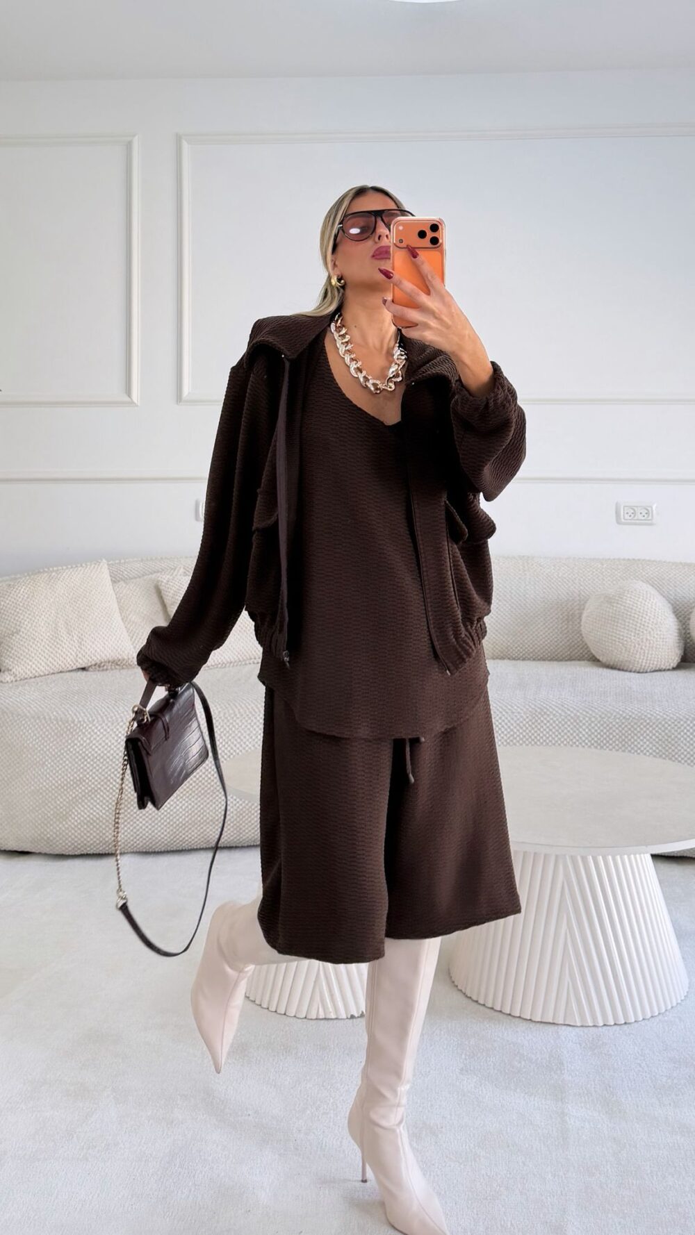 חליפת טריפל 3 חלקים – ברמודה גופיה וגקט מבד סריג מיוחד