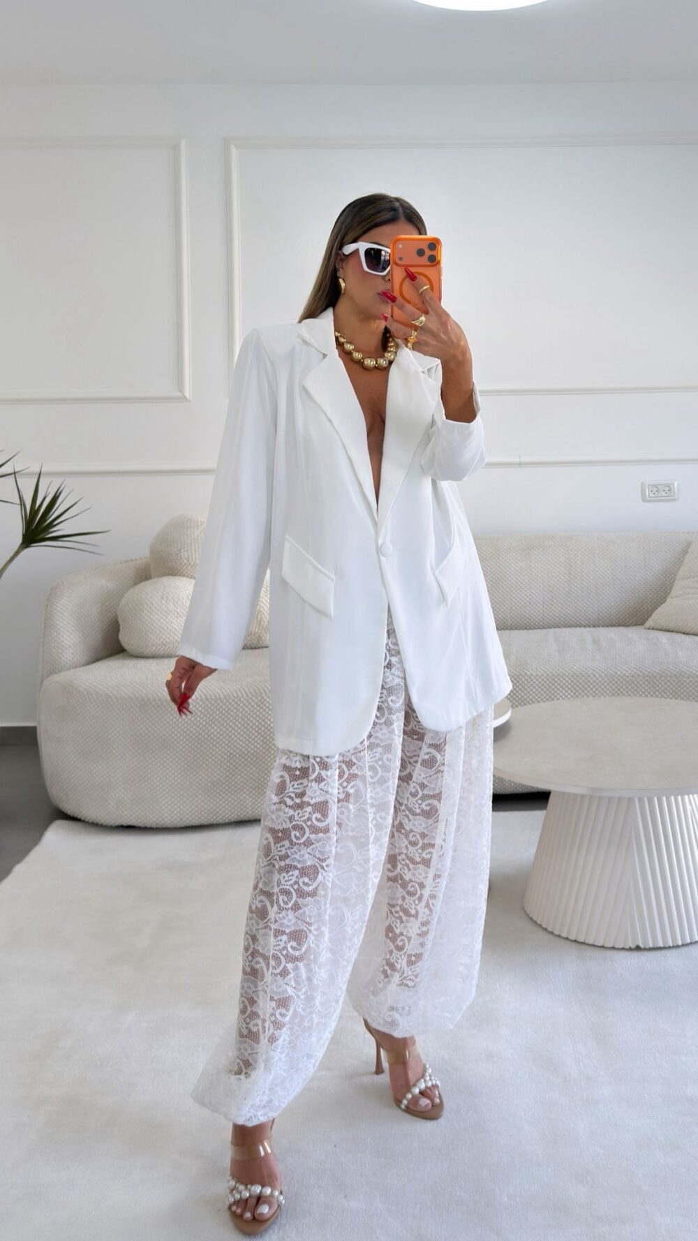 חליפת גקט ומכנס תחרה בגזרת אוברסייז