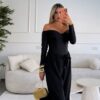 מכנס מבד ג'רזי מחטב בגזרה ישרה עם רוכסן וסגירת כפתור מגיע יחד עם חגורת אבזם זהב (נשלפת)