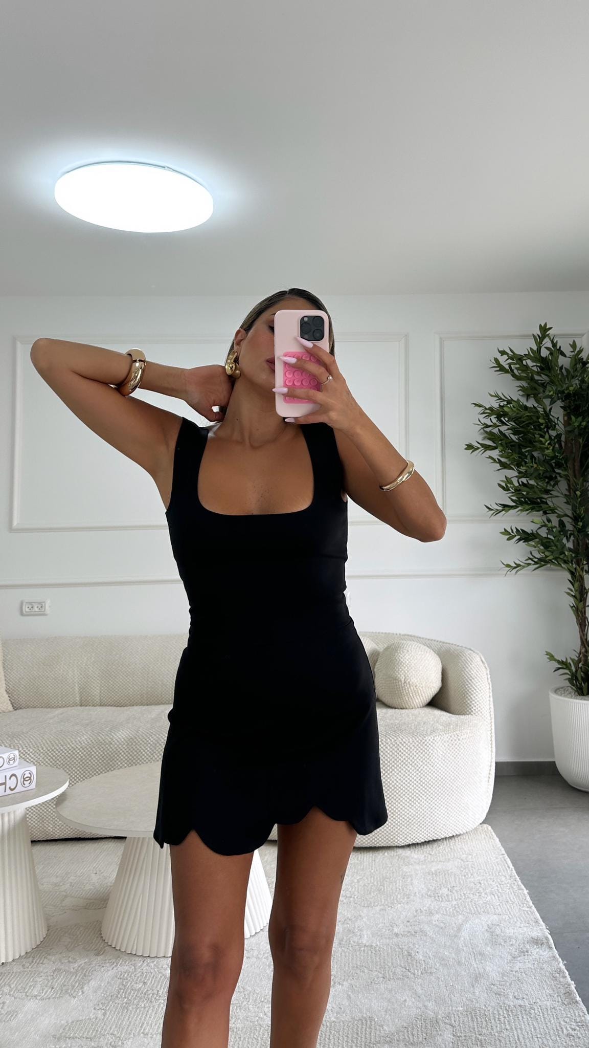 שמלה עם סיומת א סימטרית מבד מחטב.